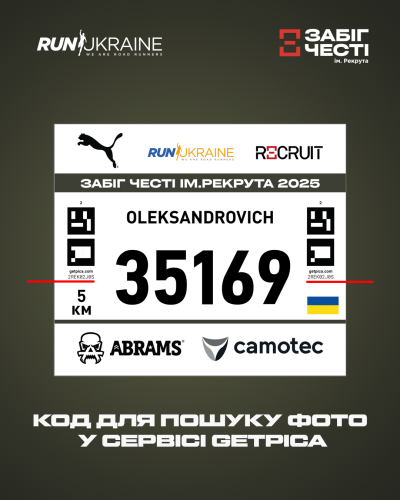 Знайти своє фото з Забіг Честі ім. Рекрута 2025 можна як по номеру, так і з допомогою системи автоматичного розпізнання обличчя.